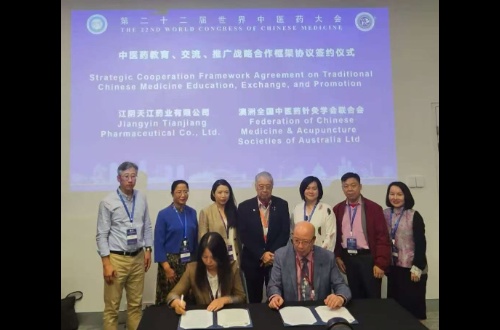 Tianjiang Pharmaceutical, a Subsidiary of China TCM, and Federation of Chinese Medicine & Acupuncture Societies of Australia Sign Strategic Cooperation Framework Agreement