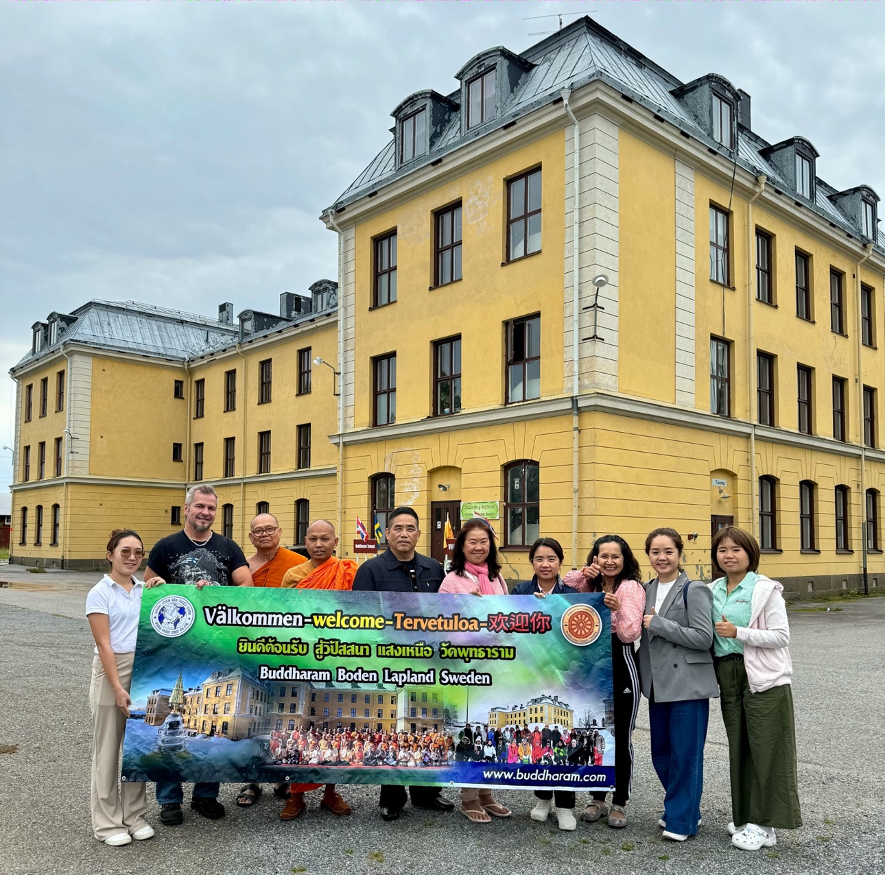 Wat Buddharam Boden Sweden Temple is located in the city of Boden in northern Sweden. The site of the temple is a century-old former Swedish military school building and is adjacent to the Boden Defense Museum (Försvarsmuseum Boden). The founder and abbot of the temple, Venerable Dr. Phravittespunyaporn (Chao Khun Phramahaboothin Taosiri), aims to propagate Buddhism in Nordic countries and provides a place for devotees globally to learn and practise Buddhism in the Swedish uniquely beautiful natural environment.