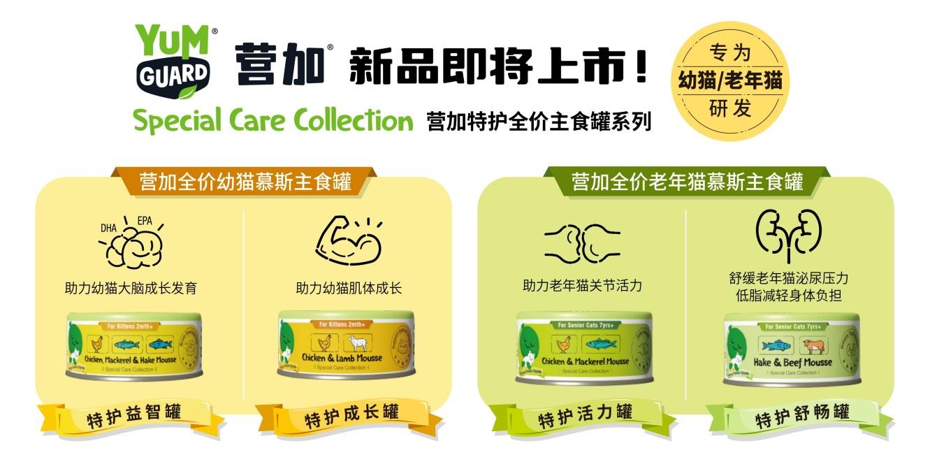 Another new product unveiled by YumGuard during this event, the Special Care Complete Food Can, is also set to be launched soon, providing a fresh nutritional care solution for kittens and senior cats. In the kitten series, the Chicken & Mackerel & Hake formula supports brain development, while the Chicken & Lamb formula aids overall body growth. For senior cats, the Chicken & Mackerel formula promotes joint vitality, and the Hake & Beef formula helps alleviate urinary stress, offering a low-fat option to ease physical strain.