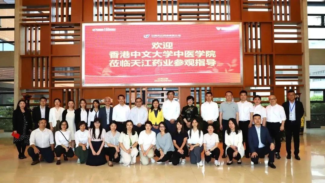 On June 5, the visiting training class of the School of Chinese Medicine at the Chinese University of Hong Kong (hereinafter referred to as "CUHK") visited Jiangyin Tianjiang Pharmaceutical. The delegation studied and visited Tianjiang Pharmaceutical's traditional Chinese medicine extract granule origin hall, testing center, research institute and intelligent workshop, etc., and held discussions and exchanges.