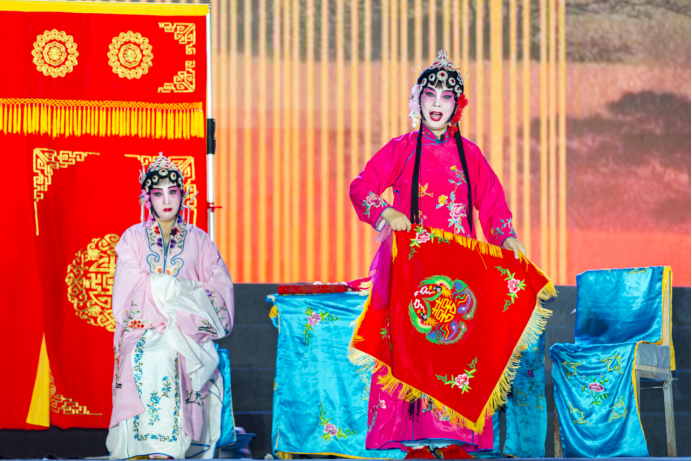 Classic excerpts such as "Sister-in-Law," "The Remarriage Of Mrs.Li," and "Press for Marriage" captivated the live audience, satisfying their appetite for traditional opera. Furthermore, theater enthusiasts received resounding applause from the masses for their self-written and self-performed new play, "The Beautiful Courtyard," which revolved around the theme of rural revitalization.