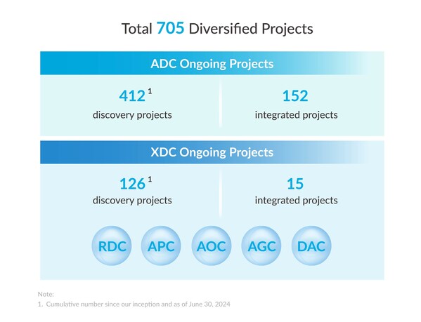 The Group has a diversified project base with a total of 705 projects,covering both innovativeADC and broader bioconjugate (XDC) projects. The total number of integrated ADC projects reached 152. The number of integrated XDC projects increased to 15.