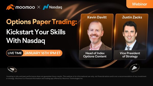 To enhance participants' understanding of the dynamics and risks associated with options trading,moomoo is partnering with Nasdaq to host a webinar on January 16,2025,"Options Paper Trading: Kickstart Your Skills with Nasdaq." Kevin Davitt,Head of Index Options Content at Nasdaq Inc.,and Justin Zacks,Vice President of Strategy at Moomoo Technologies Inc.,will guide attendees through the importance of paper trading as a practical preparation before transitioning to live options trading and participating in the Challenge.