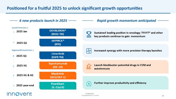 Looking ahead in 2025,the company anticipates a year of rapid growth,driven by six new drug launches and further advancements in commercialization across oncology and general biomedicine. Key highlights include: