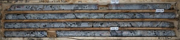 Figure 4: Very high-grade spodumene pegmatite with very large spodumene crystals from the Nova Zone at CV5 (drill hole CV24-733). Drill core grades 4.0% Li2O over 18.4 m (254.0 m to 272.4 m).