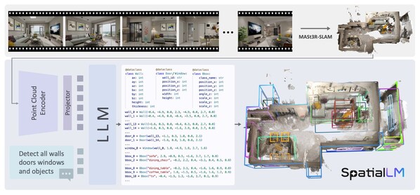 SpatialLM overcomes the limitations of traditional large language models to enhance the machines' ability of understanding real-world geometry and spatial relationships,much like humans do. It can automatically generate structured 3D scenes from videos,based on point cloud data extracted from those videos. It is able to accurately recognize and understand these scenes and translate them into 3D structural layouts.