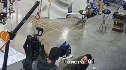 Footage shows a humanoid robot thrashing its arms and going ‘berserk’ as handlers cower from it in a workshop.