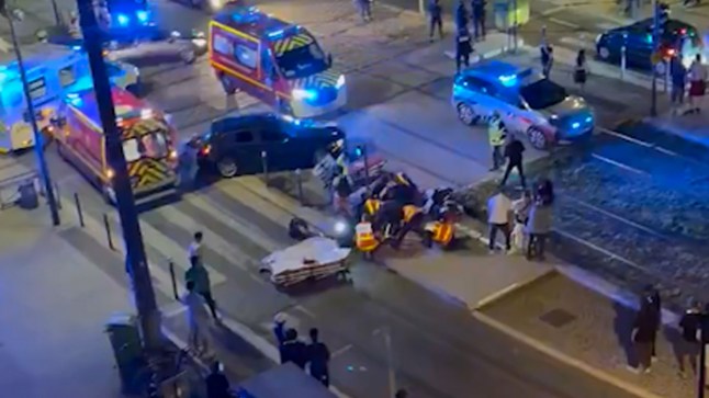 Four members of the same family are being treated in hospital after a car drove into a crowd celebrating in the southeastern city of Grenoble just after midnight.