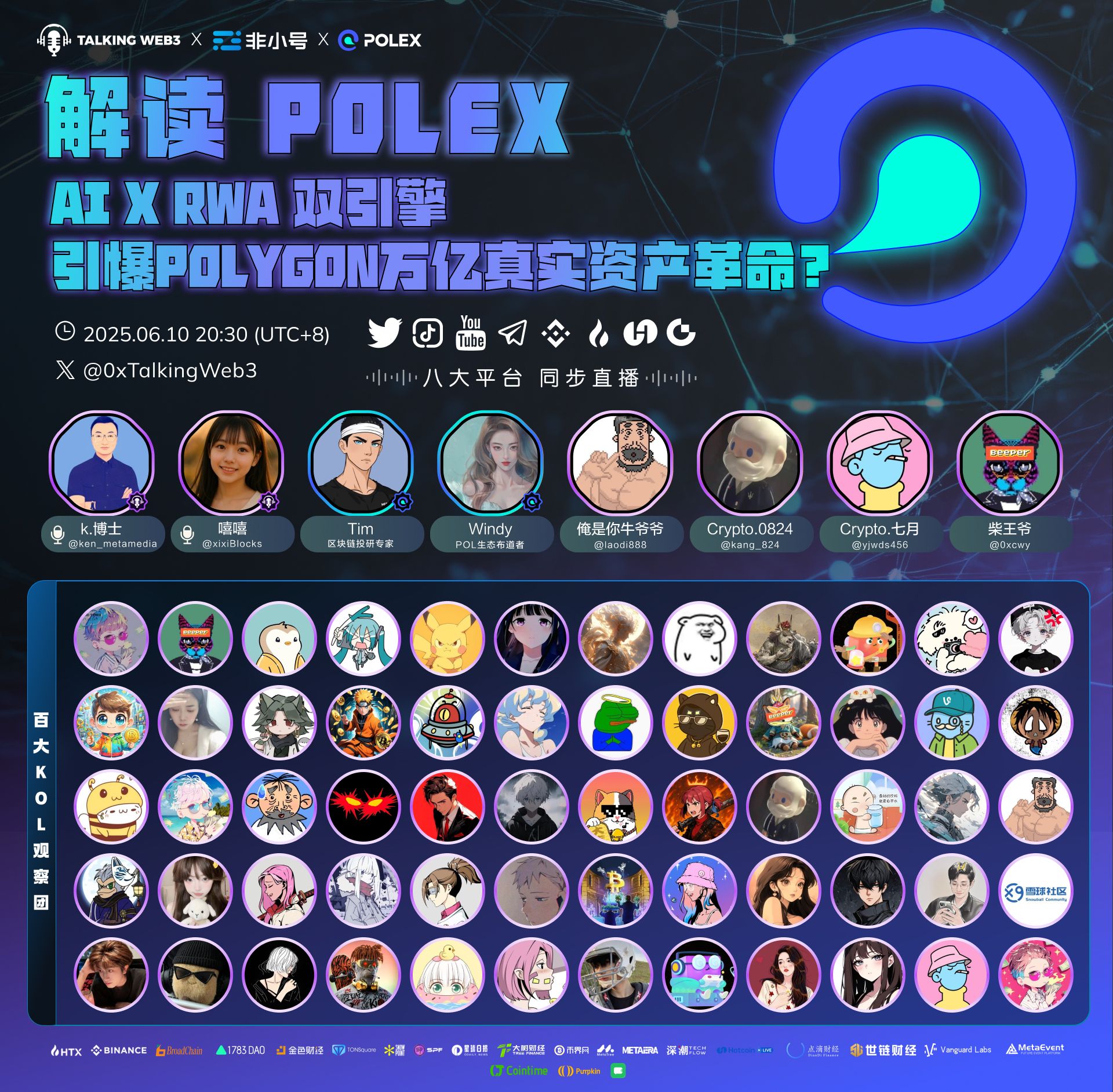 On the evening of June 10, 2025, at 8:30 PM (UTC+8), the Twitter Space online AMA event, jointly hosted by Talking Web3 and POLEX, came to a successful conclusion. This event, which focused on "POLEX: How the AI x RWA Dual Engines Will Ignite a Trillion-Dollar Real Asset Revolution on Polygon?", attracted widespread attention from Web3 enthusiasts, investors, and industry professionals worldwide, achieving unprecedented success.