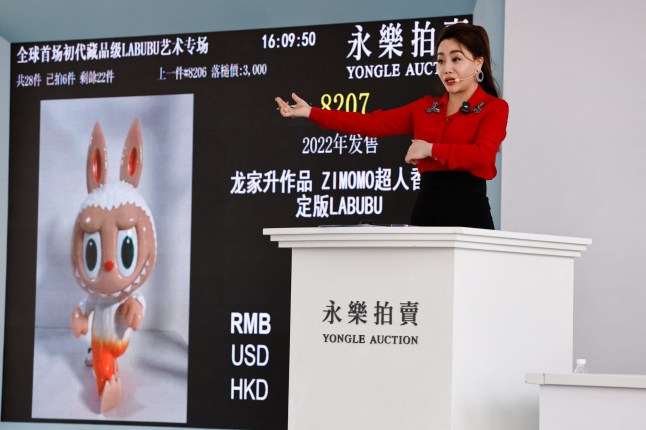 An auction at Yongle International Auction in Beijing this week was dedicated solely to Labubu,with 48 items put on sale.