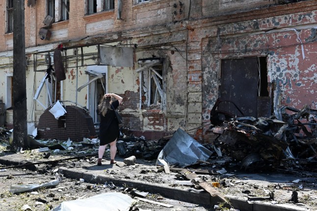A recruitment centre damaged after a drone attack in Kharkiv on Monday (Picture: SERGEY BOBOK/AFP)